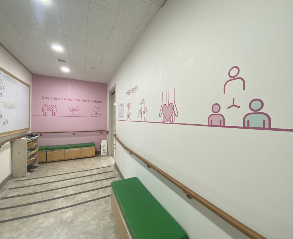 삼화페인트는 층별 핵심 컬러를 활용해 노인, 장애인, 어린이 등 사회 취약계층의 안전감을 높였다. 특히, 시설 내부에 픽토그램을 삽입해 해당 층에서 어떤 시설이 있는지를 쉽게 구분 가능하게끔 설계했다.
