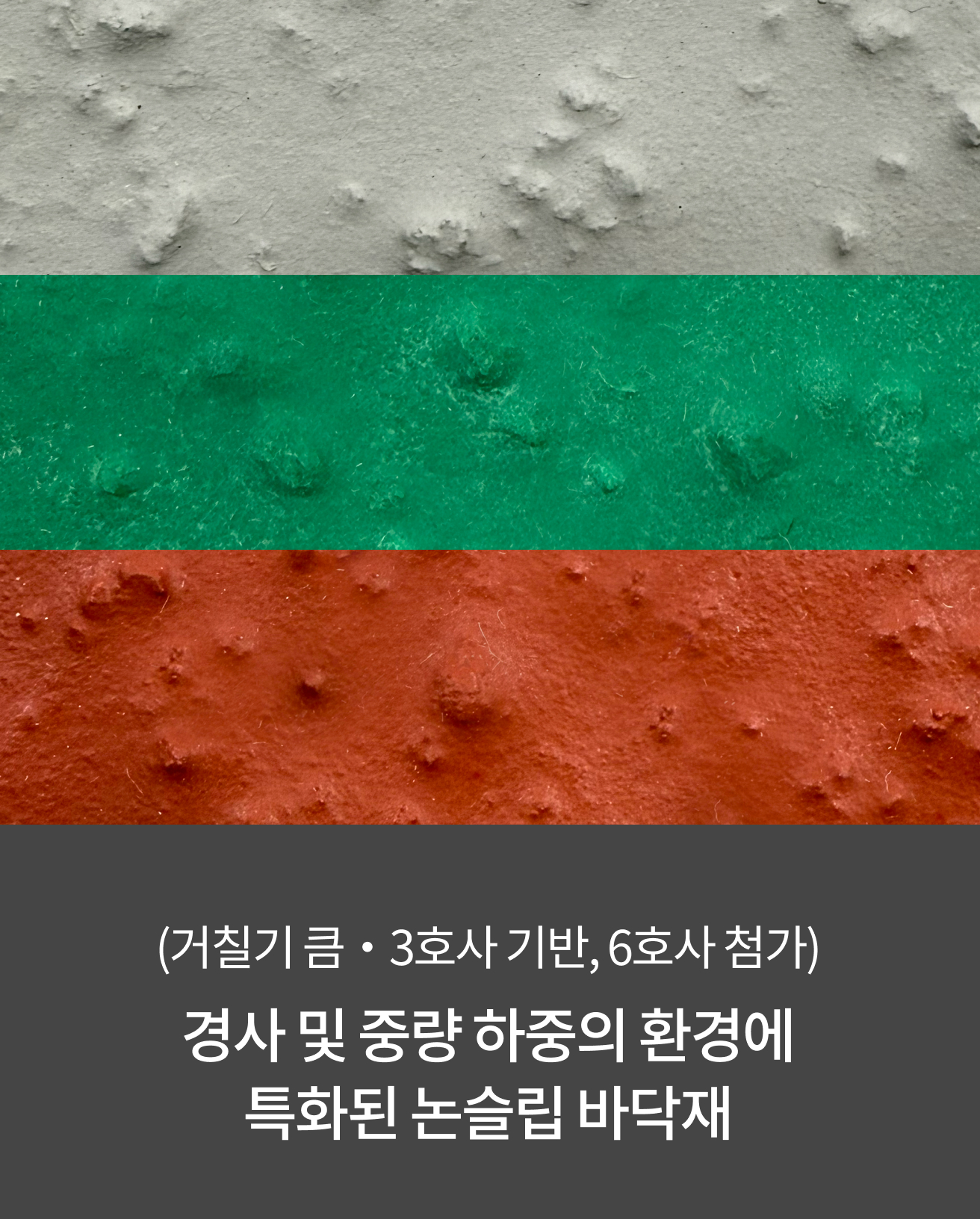 버틸 수 있는 고내구성의 바닥 솔루션이 요구됩니다. 미끄럼 방지 성능의 핵심은 골재와의 결합력이 안정적으로