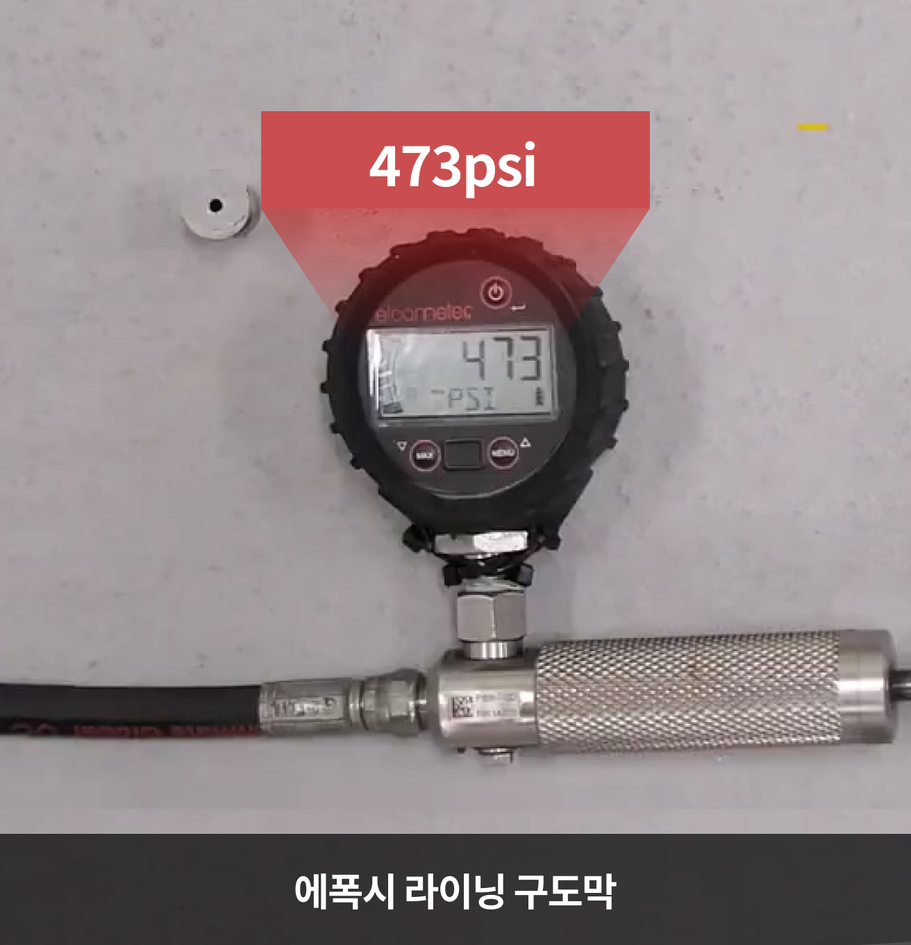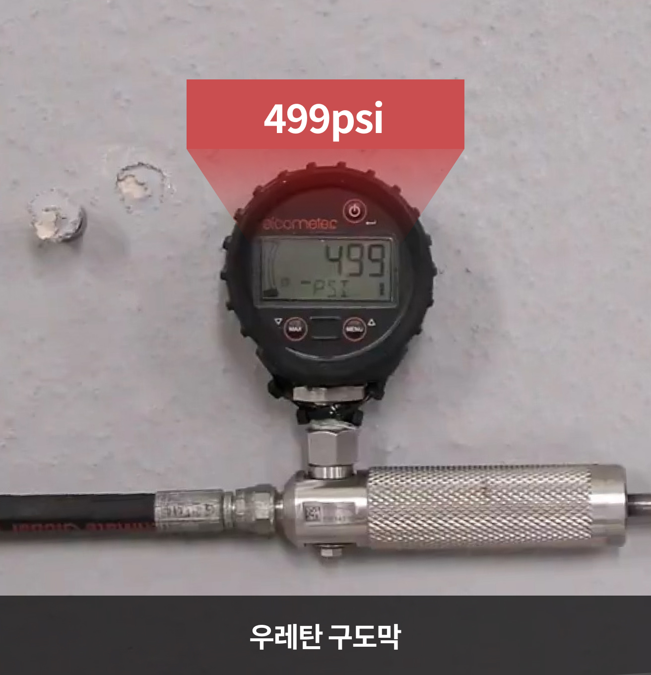 499psi 우레탄 구도막, 473psi 에폭시 라이닝 구도막, 449psi 에폭시 코팅 구도막, 412psi 아크릴 구도막