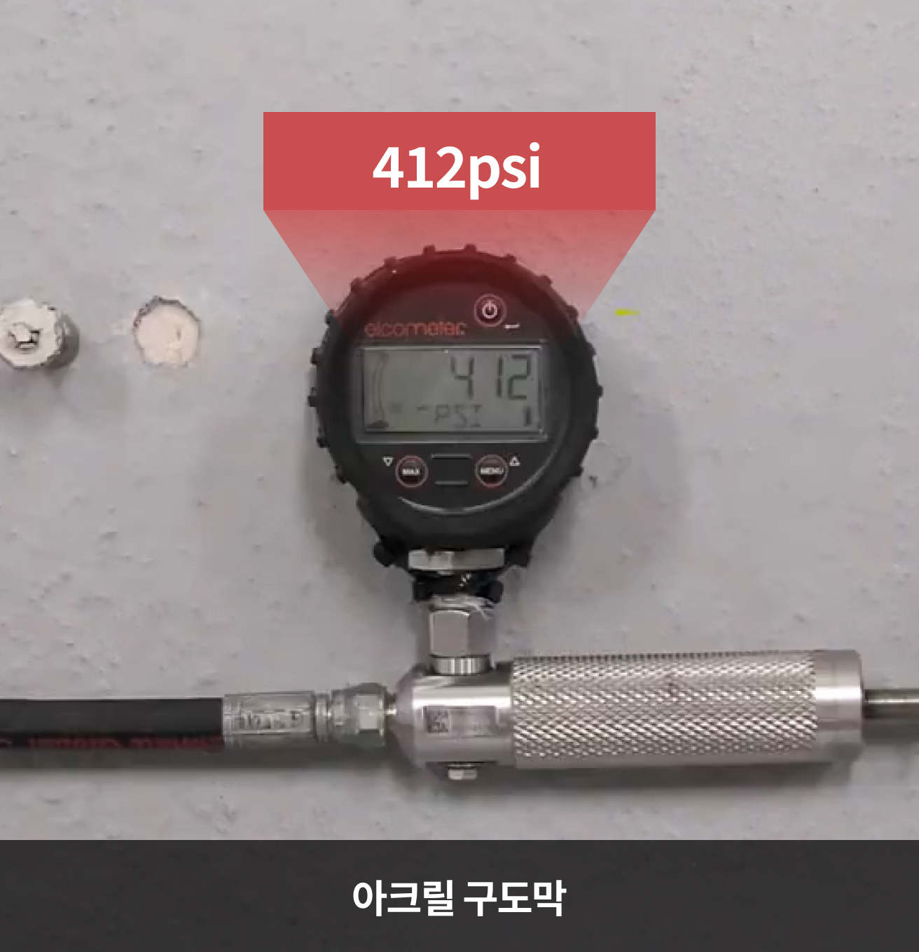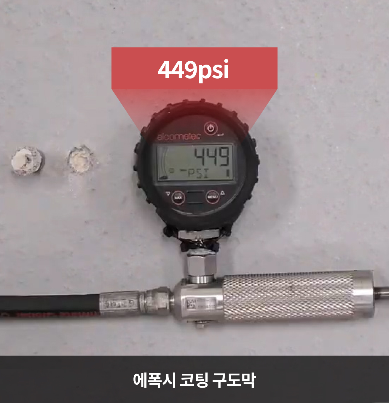 400psi 이상을 기록했습니다. 이는 원전 방호 도장의 최소 기준으로 언급되는 200psi를 크게 상회하는 수치입니다.